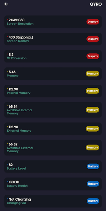 Aplikasi Tes Giroskop akan memberi Anda hasil positif atau negatif tergantung pada ada atau tidaknya sensor.