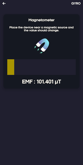 Jika perangkat Anda memiliki sensor giroskop, aplikasi akan memberi Anda hasil kekuatan sensor dalam dps (derajat per detik).
